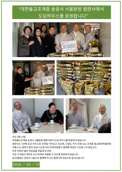 "대한불교조계종 송광사 서울분원 법련사에서 도담하우스를 응원합니다"
