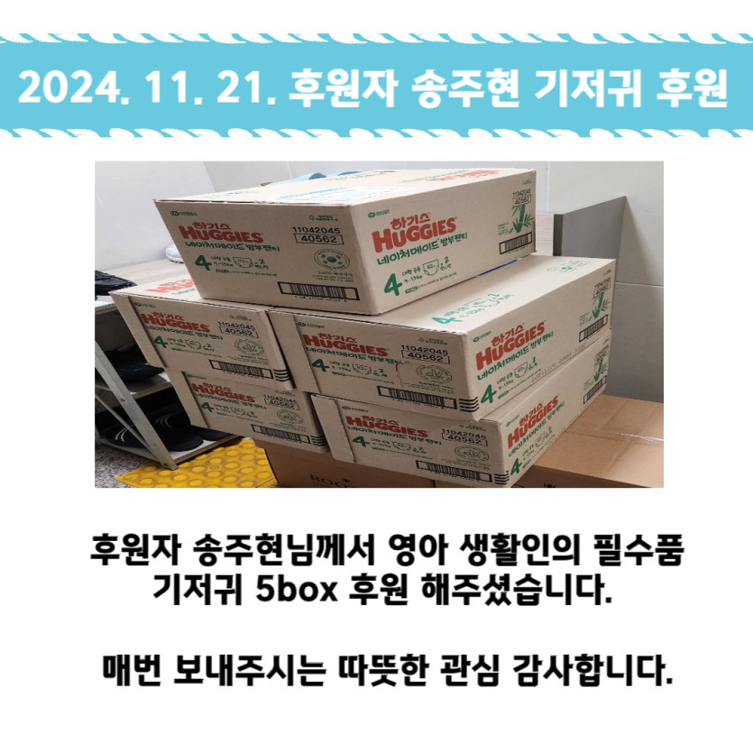 2024. 11. 21. 후원자 송주현 기저귀 후원 페이지 정보 작성자 도담하우스 댓글 0건 조회 90회 작성일 2024-11-27 14:21 본문 2024. 11. 21. 후원자 송주현 기저귀 후원 SNS공유 검색 목록 이전글2024. 11. 23. 익명 후원자 아기의류,블럭,기저귀 후원 24.11.27 다음글하남가족센터 뜨개물품 후원 24.11.27 댓글목록 댓글목록 등록된 댓글이 없습니다.