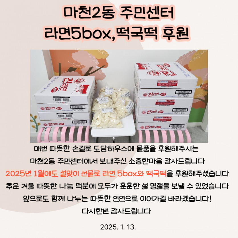2025. 01. 13. 마천2동주민센터 라면5BOX,떡국떡 후원